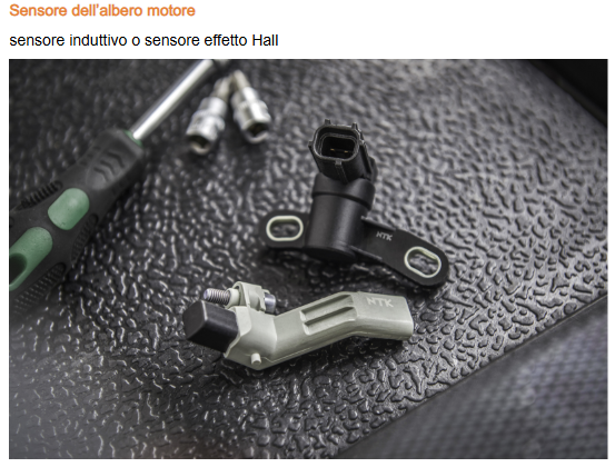 - Rileva il segnale di una ruota dentata o del disco che ruota assieme all’albero motore.
