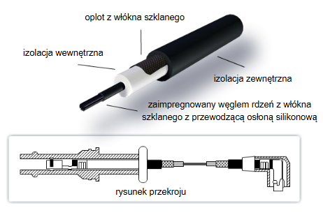 Wewnątrz przewodu zapłonowego z opornikiem węglowym znajduje się oplot z włókna szklanego impregnowany węglem.