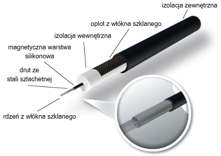 Rdzeń miedziany otoczony jest powłoką silikonową, która powoduje większą sztywność przewodu i służy jako izolator elektryczny.