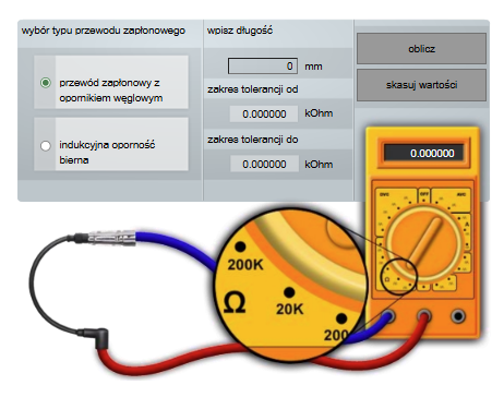 - Przewody reaktancyjne i z opornikiem węglowym: wartość oblicza się mnożąc oporność na metr przez długość przewodu plus zakres tolerancji. Kalkulator online znajdziesz tutaj.