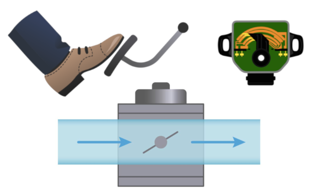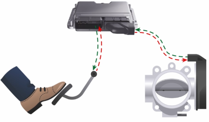 - The position of the throttle valve is transmitted to the control unit via an electronic signal.