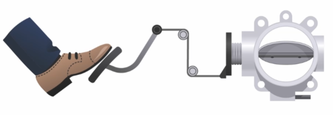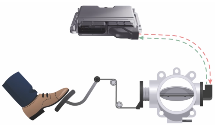 With electronic throttle valves, there is no mechanical connection to the accelerator pedal. Instead, the driving request is detected by an electronic accelerator pedal.