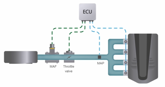 Air pressures upstream and downstream of the throttle valve (MAF MAP interaction)