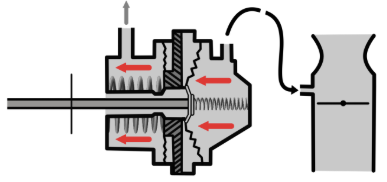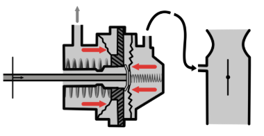 - Maintains a small air passage to sustain combustion at idle speeds.