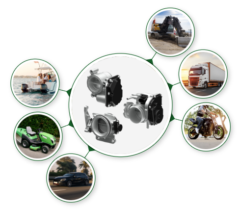 In diesel engines, throttle valves are referred to an air control valves, which are available with or without integrated control electronics.
